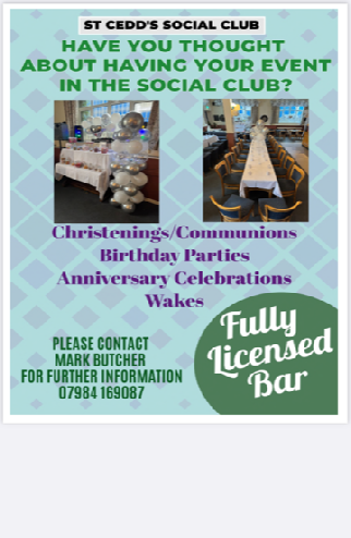 The club has established a committee that works continuously to find ways that they can raise the profile of the club and keep a good mix of events happening so that more people can benefit from using the club. Unfortunately, we are now in a position where the club is becoming less financially viable due to increased costs in general and lack of support from a wider community in attending the club and the events. It’s completely understandable that some of our supporters are unable to attend the club due to various reasons but we have been assured that they would like to support us in ways to keep the club open. Due to this we have decided to set up a go fund me page so that anyone who wants to donate to St Cedd’s Catholic Social Club has a way of contributing financially through the go fund me page.